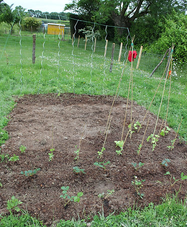 Bon, en attendant, mon sol est prêt, et bien qu'encore un peu compact, j'y ai installé des jeunes plants (préparés par mes soins) : tomates, petits pois, cornichons; des plants de fraises, achetés dans le commerce; semé des radis, oignons rouges, et poireaux. Puis ajouté toute la collection des courges, potimarrons, courgettes, et concombres... et depuis, ça pousse!! :)